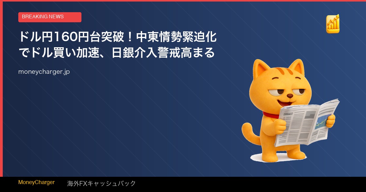 NY外国為替市場でドル円相場が160円台に上昇しました。中東地域の地政学的リスクが高まる中、投資家が安全資産としてのドルを選好する「有事のドル買い」の動きが強まったことが主因です。
